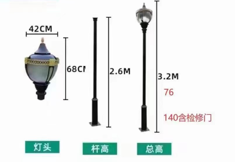 我公司的庭院燈具有多樣性、美觀性和裝飾環(huán)境的特點,質量保障,使用壽命長,樣式齊全,其主要部件由:光源、燈具、燈桿、法蘭盤、基礎預埋件5部分組成;可根據您的需求定制不同規(guī)格樣式。